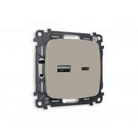 Комплект механизма розетки 2USB A+C 20W (быстрая зарядка) Ambrella Volt Omega MO371010