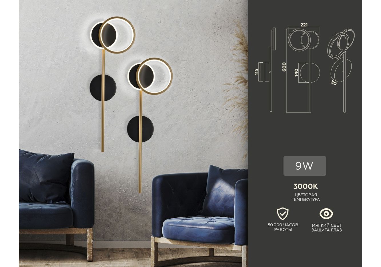 Мощность ламп, Вт: