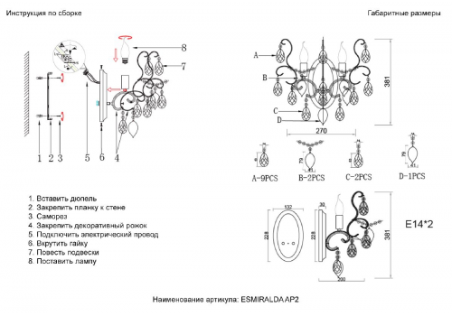 Бра Crystal Lux ESMIRALDA AP2 GOLD