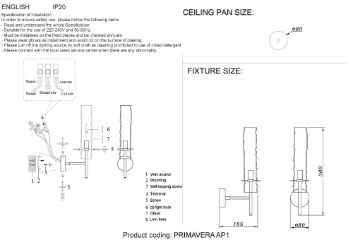 Бра Crystal Lux Primavera AP1 Chrome