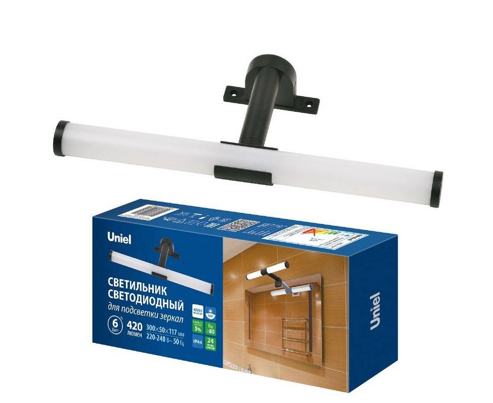 Подсветка для зеркал Uniel ULT-F37-6W/4500K IP44 BLACK UL-00012516