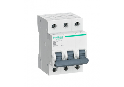 Автоматический выключатель серии City9 Set Systeme Electric, 3-полюсный, номинальный ток 63 А, характеристика С, Icn = 6 кА. Применяется в электрических сетях напряжением 400 В. Предназначен для защиты от перегрузок и токов короткого замыкания. Оснащен механизмом «мгновенной коммутации». Ударопрочный корпус из специального пластика с 6 металлическими заклепками. Безопасные клеммы исключают попадание кабелей в заклеммное пространство.