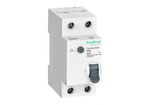 Дифавтомат Systeme Electric City9 Set 2P 25А 6 кА, 30 мА (AC)