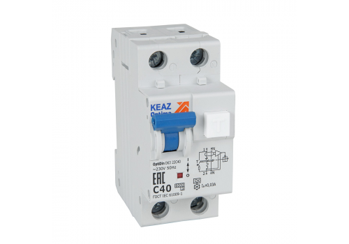 Выключатель автоматический дифференциального тока АВДТ 2П 16А 30мА A OptiDin D63-22C16-A-У3 6кА КЭАЗ