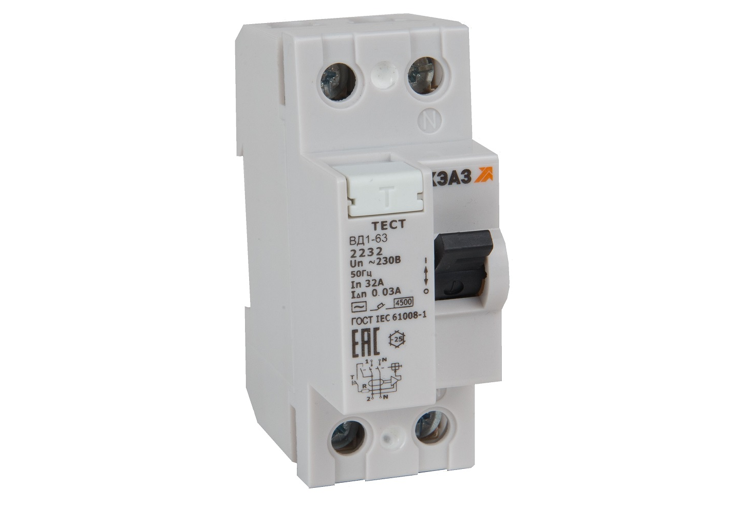 Выключатель дифференциального тока (УЗО) без защиты от сверхтоков 2П 40А 30мА ВД1-63-2240-АС-УХЛ4 318461 КЭАЗ