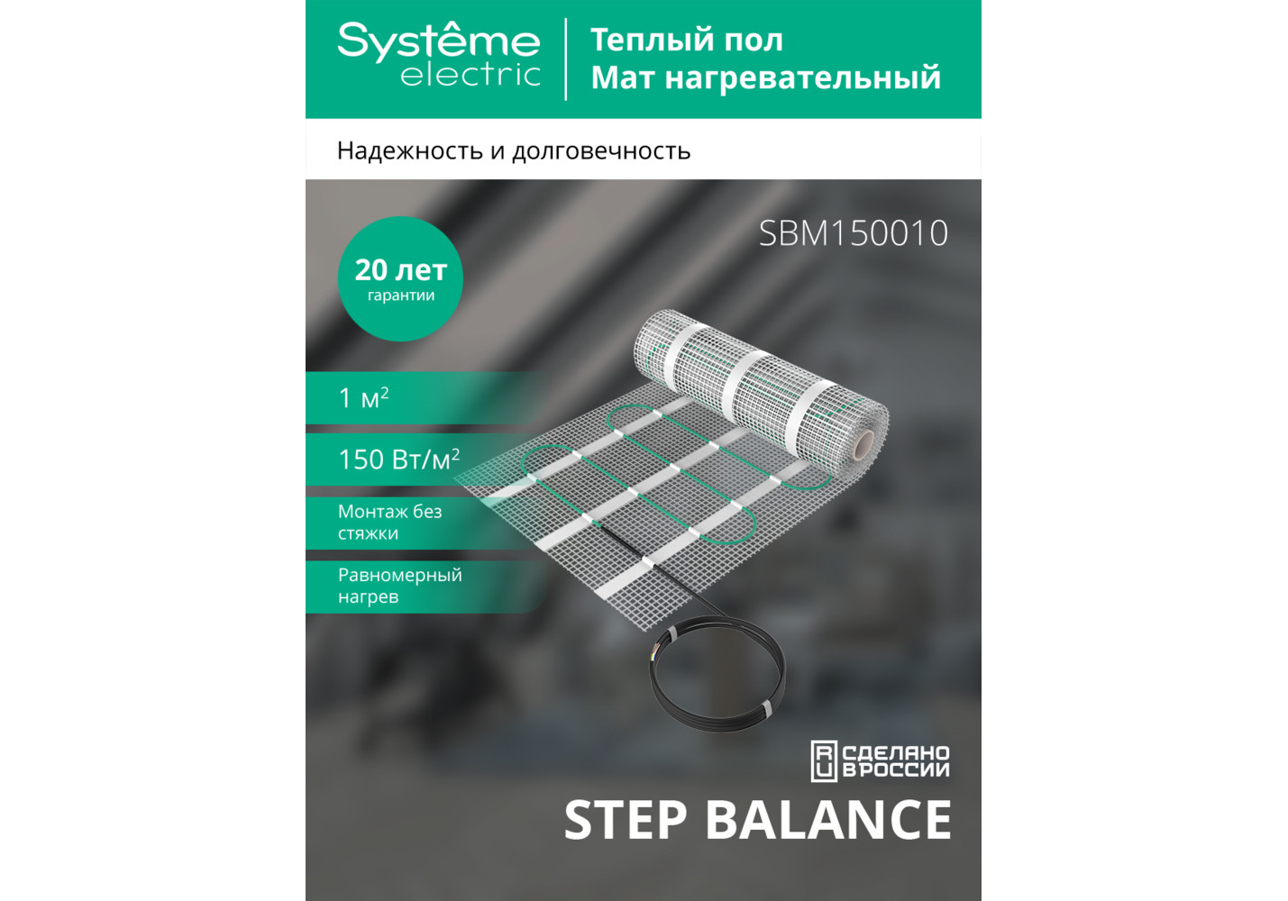 Мат нагревательный 150 Вт/м2, 150 Вт, 1 м2 Systeme Electric Step Balance SBM150010