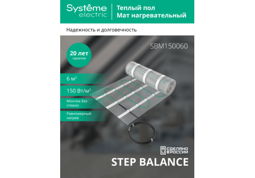Мат нагревательный 150 Вт/м2, 900 Вт, 6 м2 Systeme Electric Step Balance SBM150060