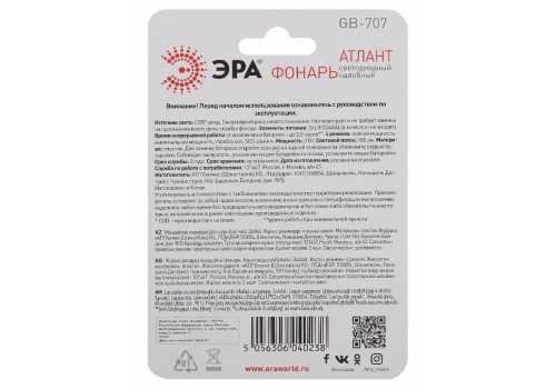 Фонарь налобный Атлант на батарейках Эра GB-707 Б0052749