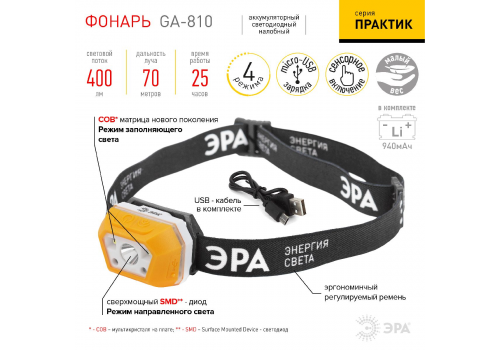 Фонарь налобный Эра GA-810 Б0052318