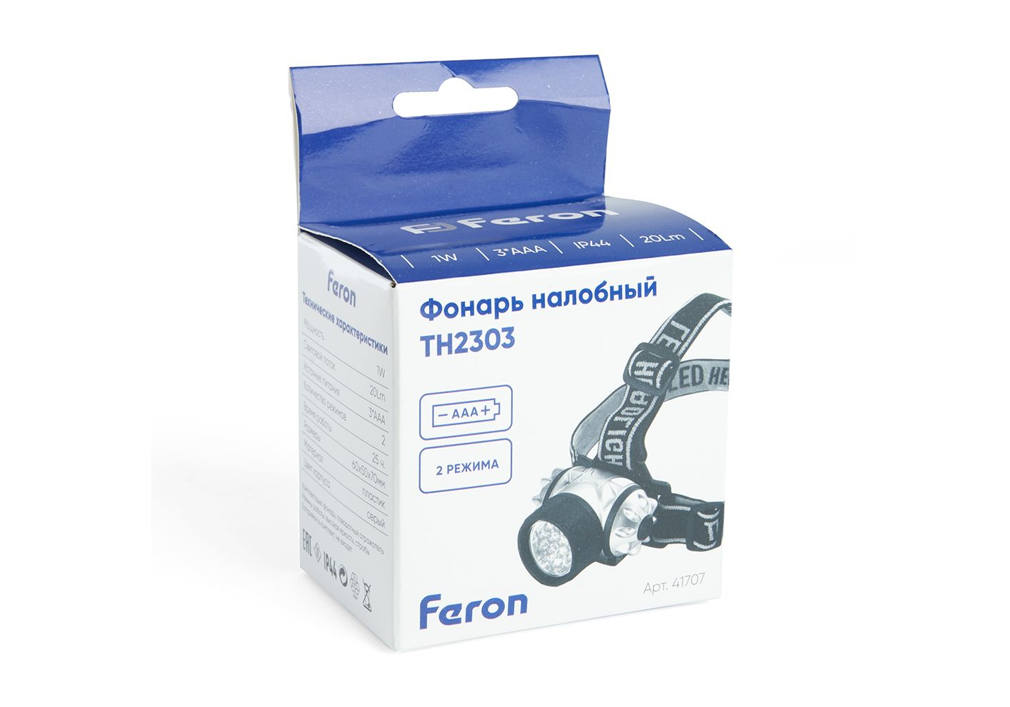 Налобный светодиодный фонарь Feron TH2303 на батарейках 60х50 20 лм 41707