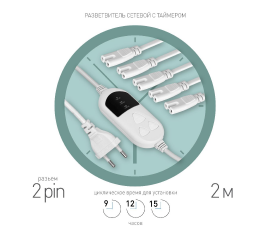 Разветвитель сетевой для линейных светильников Эра 5х IEC C7 2 pin+timer (9/12/15 H) 2м Б0060527