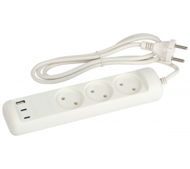Удлинитель Эра U-3-1,5m-USB-W 3 розетки + 3xUSB A+C 1,5м 10А белый