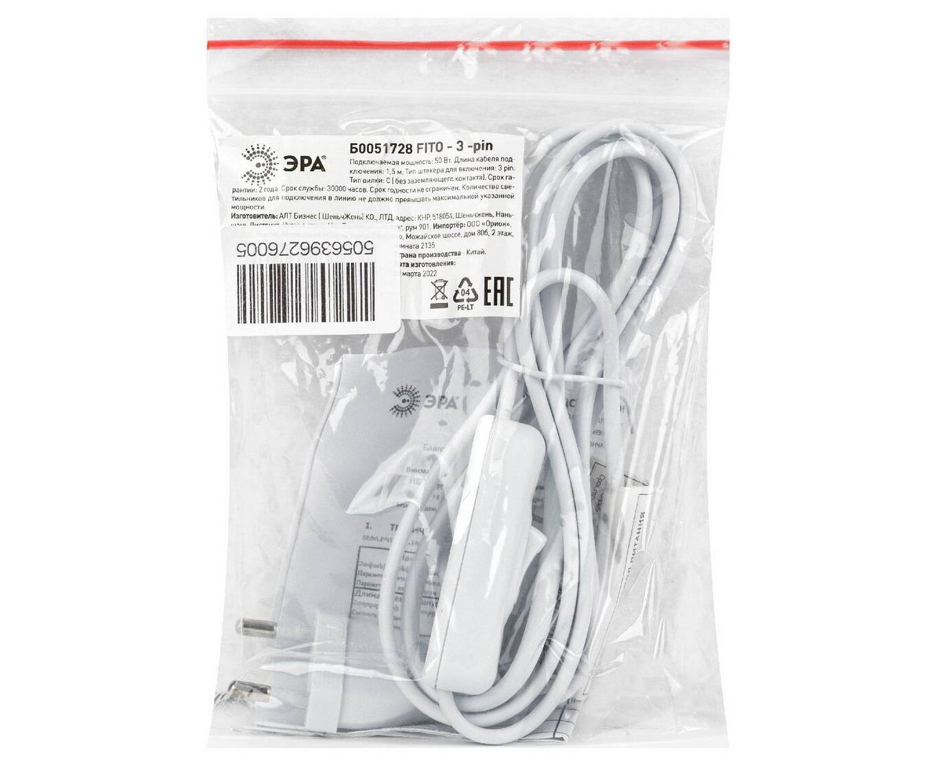 Кабель питания для линейного светильника Эра FTS-C5-plug-1,5 Б0051728