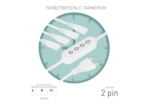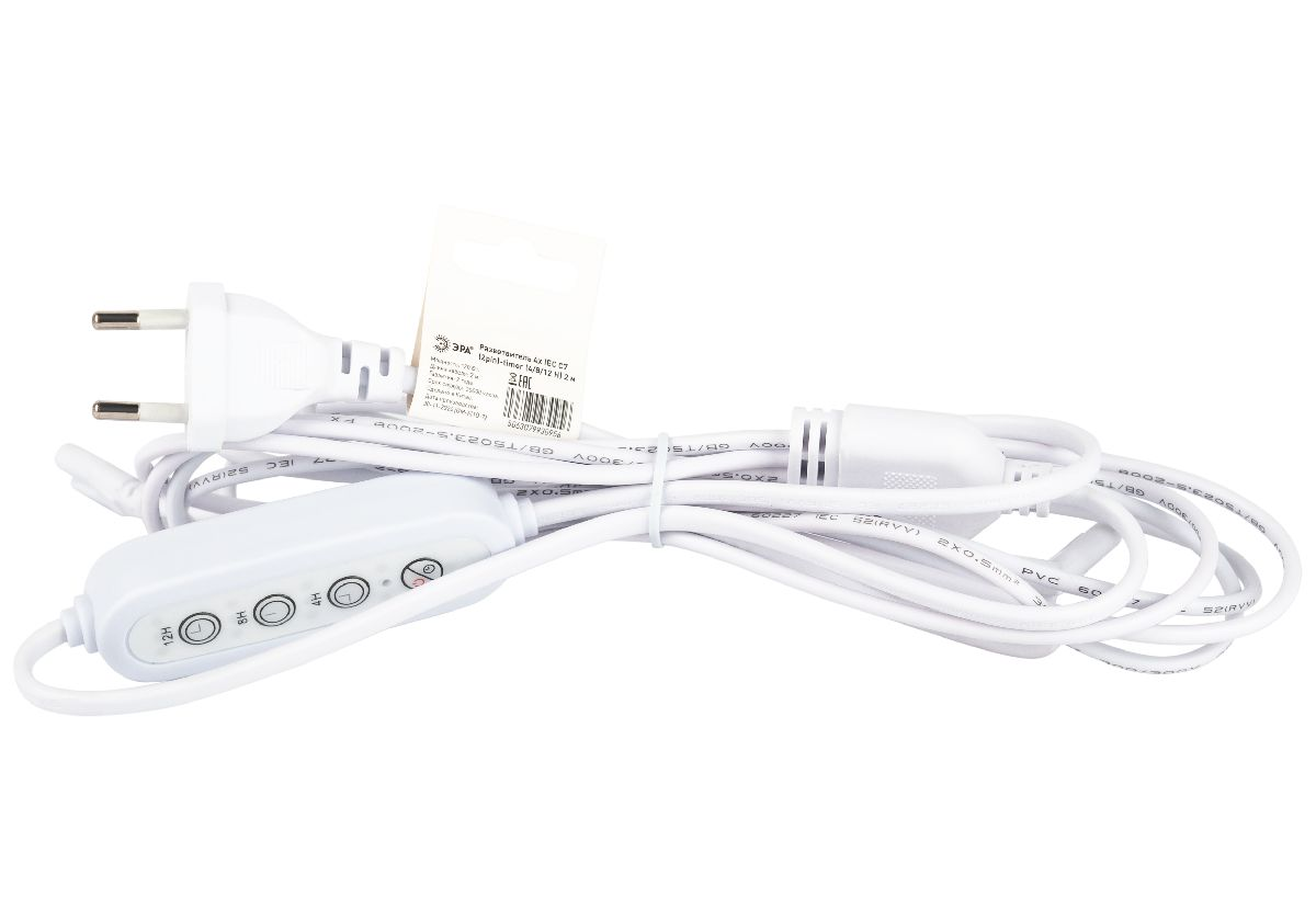 Разветвитель сетевой для линейных светильников Эра 4х IEC C7 2pin+timer (4/8/12 H) 2 м Б0066964