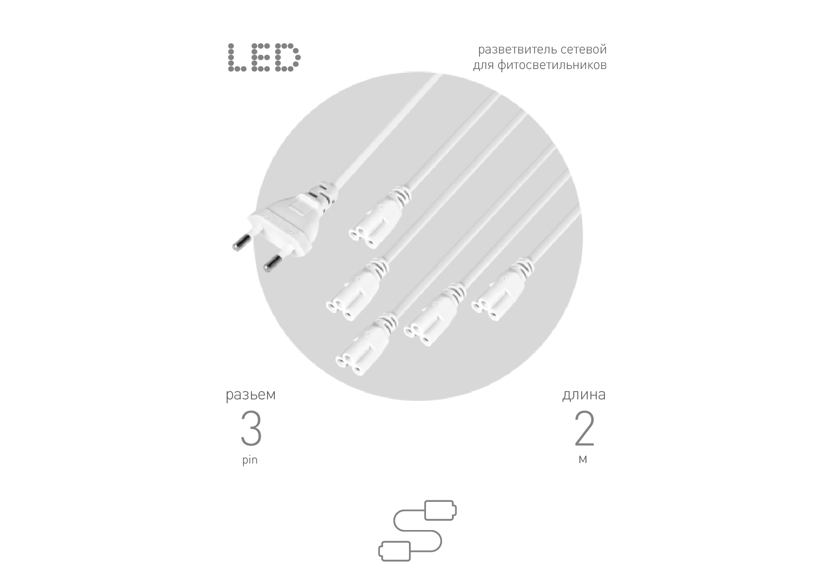 Разветвитель сетевой для линейных светильников Эра Разветвитель 5х IEC C5 2 м Б0059055