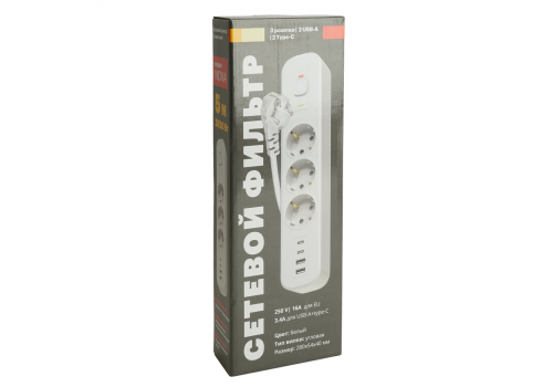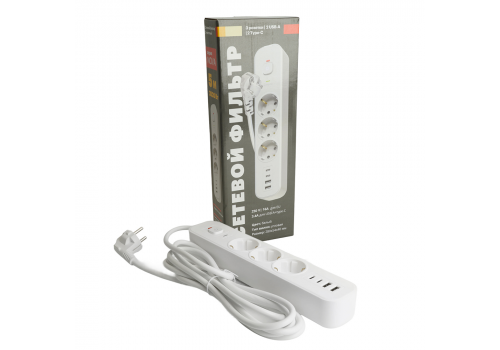 Сетевой фильтр 3-местный с/з и 2 USB-A+2 Type-C 3 Stekker Nova HM21-31-05 50101