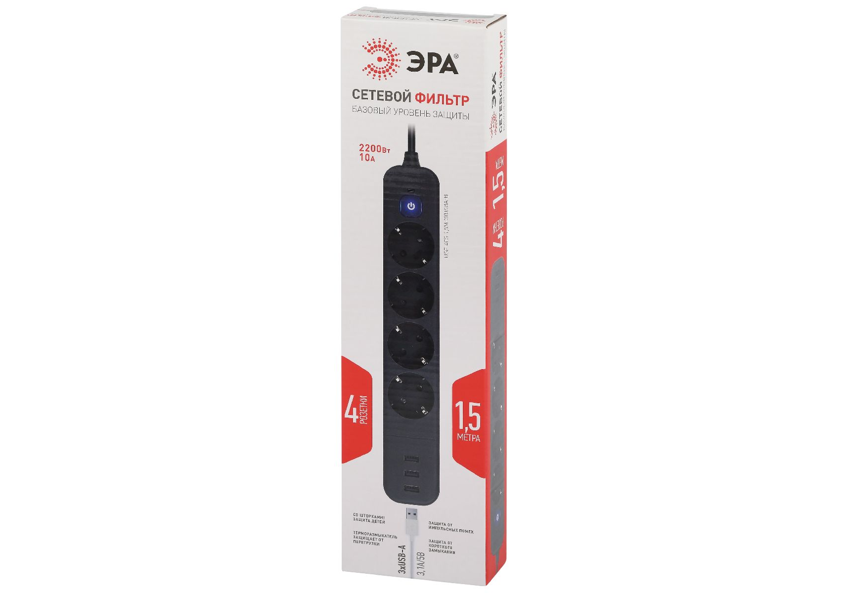 Сетевой фильтр Эра USF-4es-1,5m-3xUSBA-B Б0059568