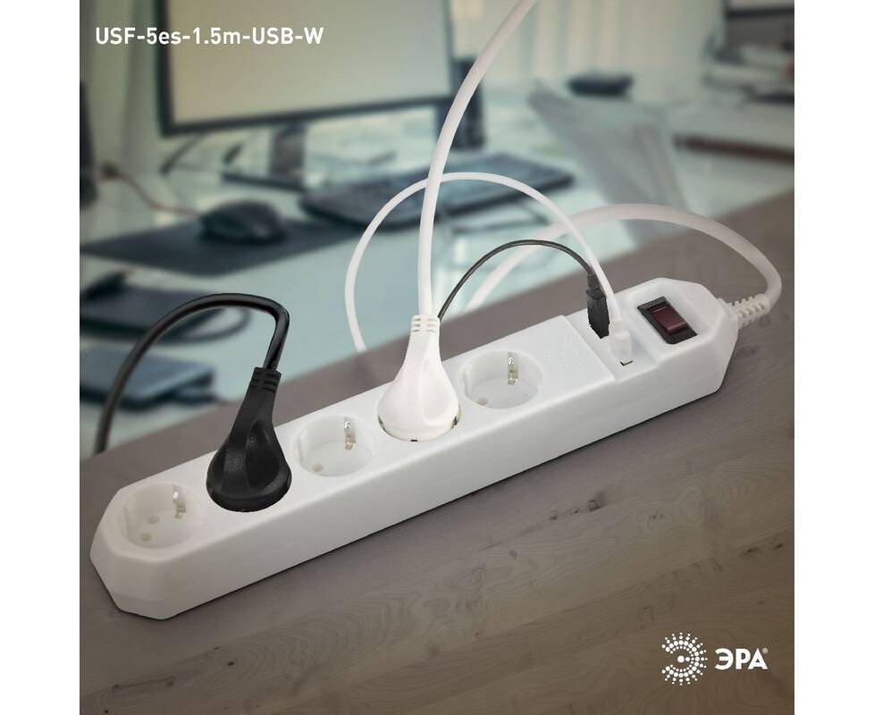 Сетевой фильтр Эра USF-5es-1.5m-USB-W Б0019037