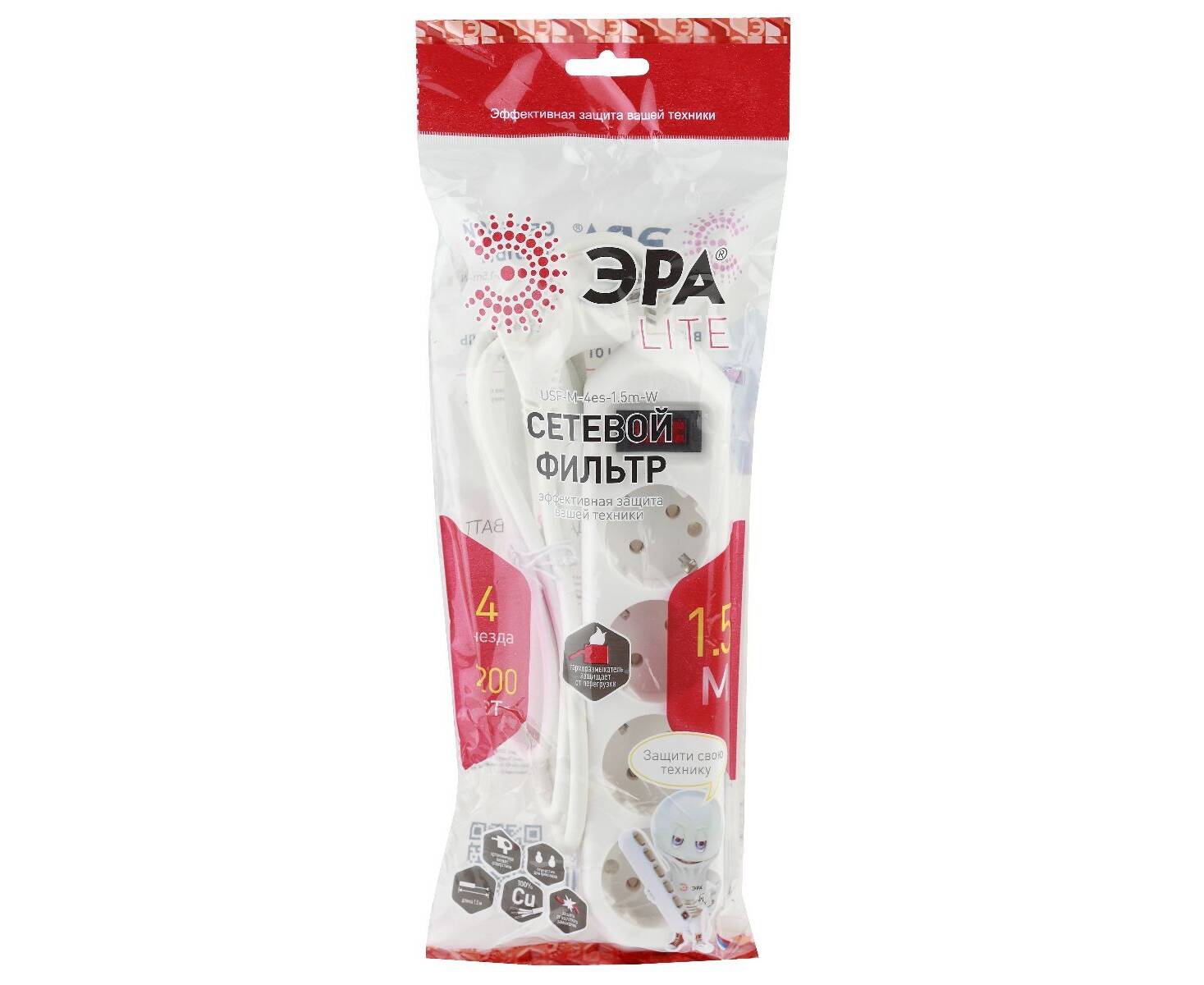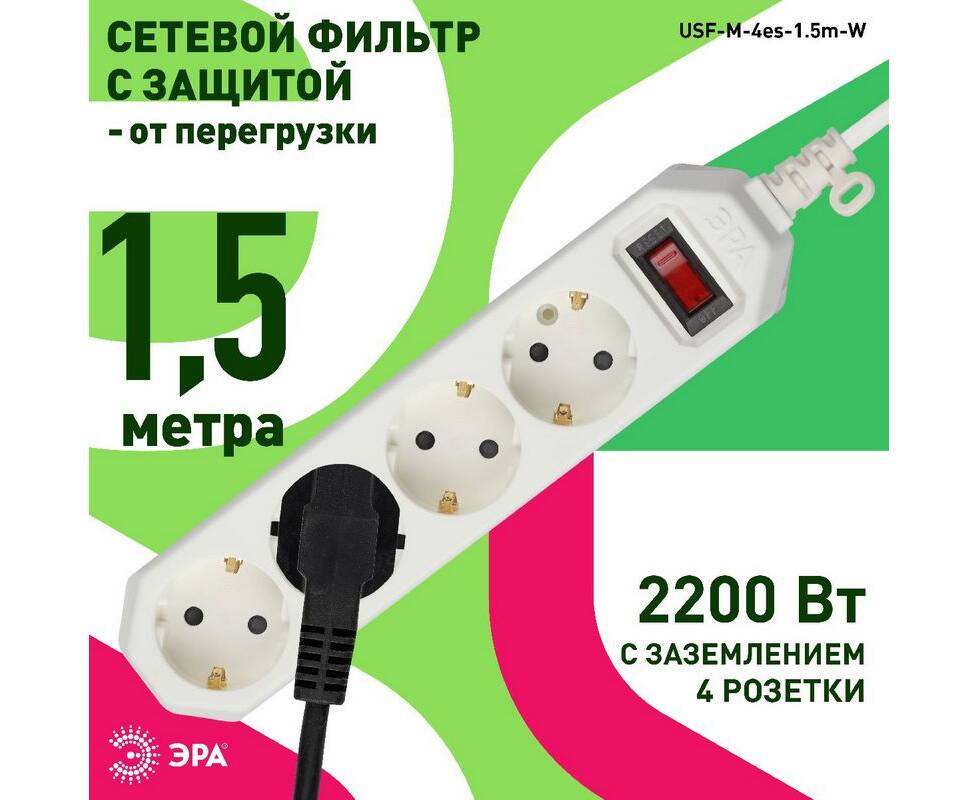 Сетевой фильтр Эра USF-M-4es-1.5m-W Б0019741