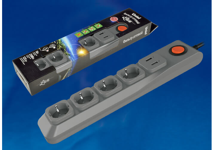 Сетевой фильтр Uniel 4гн х 3м с/з Lux S-GSL5-3U Grey UL-00001761