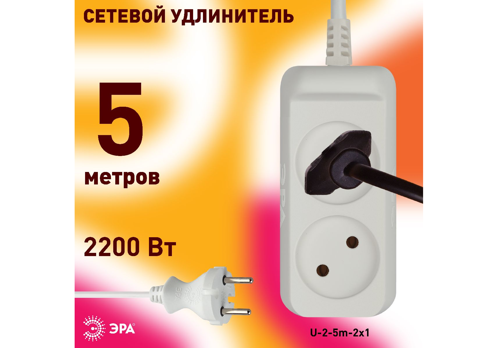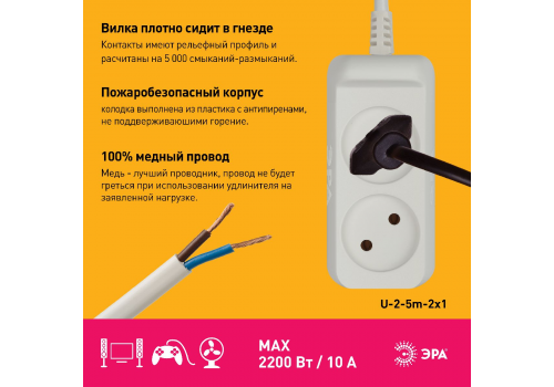 Удлинитель электрический Эра U-2-5m-2x1 Б0028361