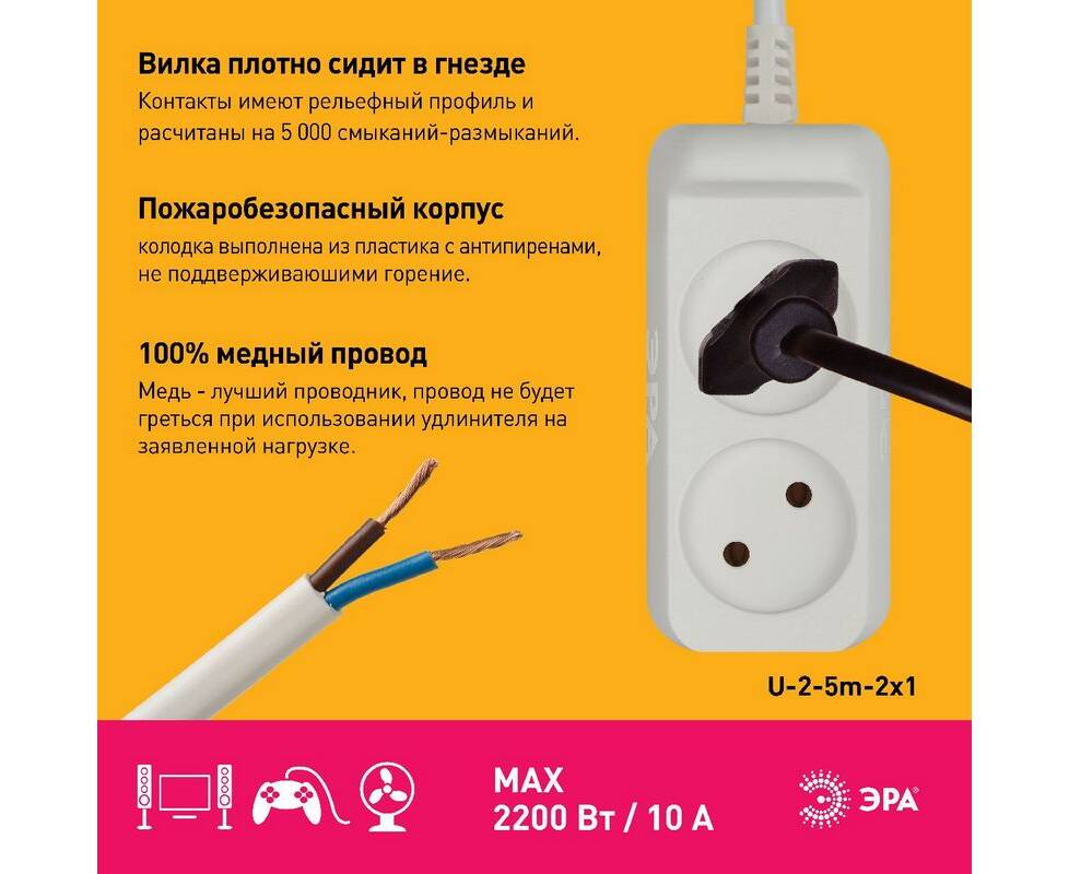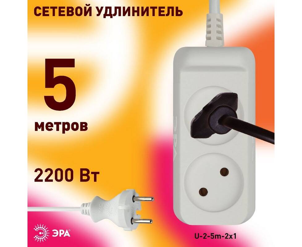 Удлинитель электрический Эра U-2-5m-2x1 Б0028361