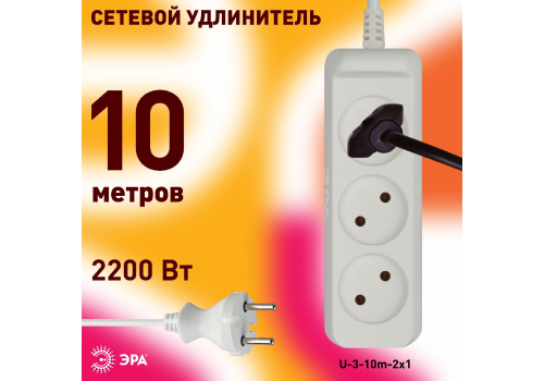 Удлинитель электрический Эра U-3-10m-2x1 Б0028358
