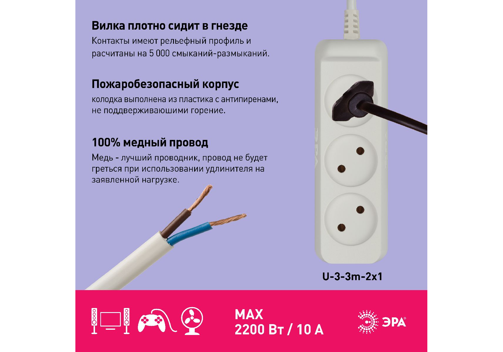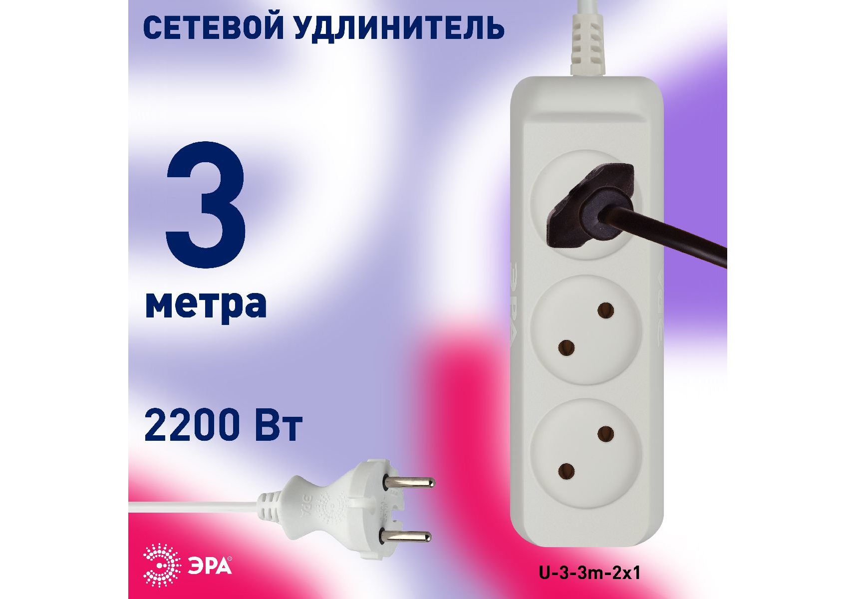 Удлинитель электрический Эра U-3-3m-2x1 Б0028355