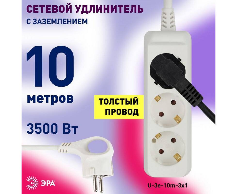 Удлинитель электрический Эра U-3e-10m-3x1 Б0028373