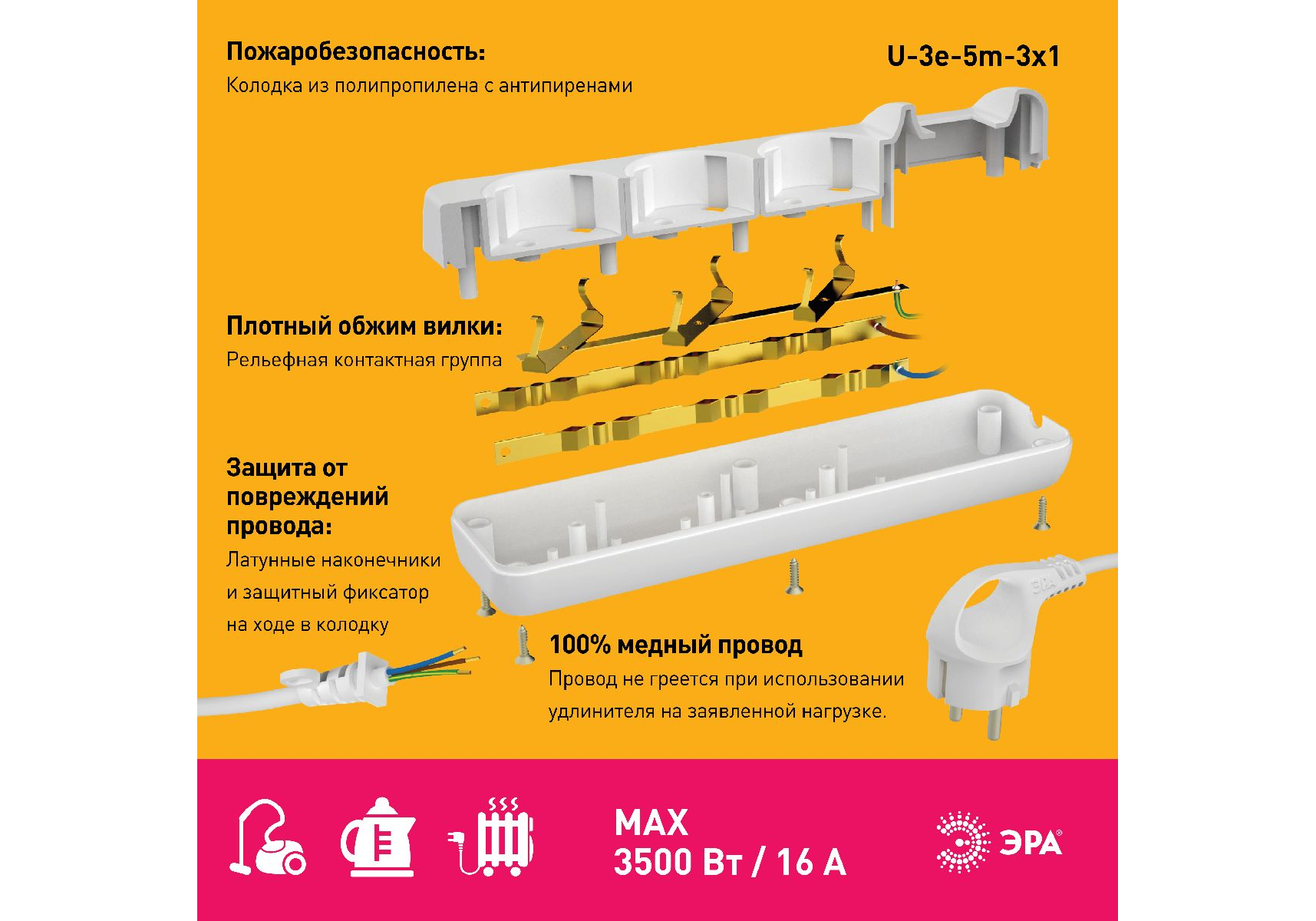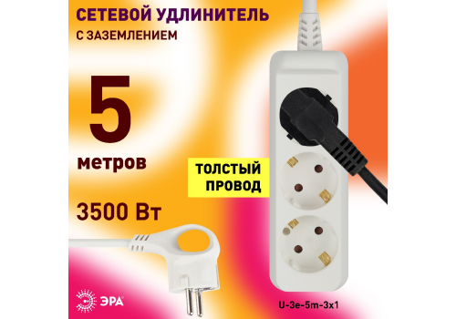 Удлинитель электрический Эра U-3e-5m-3x1 Б0028371