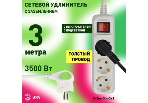 Удлинитель электрический Эра U-3es-3m-3x1 Б0028378