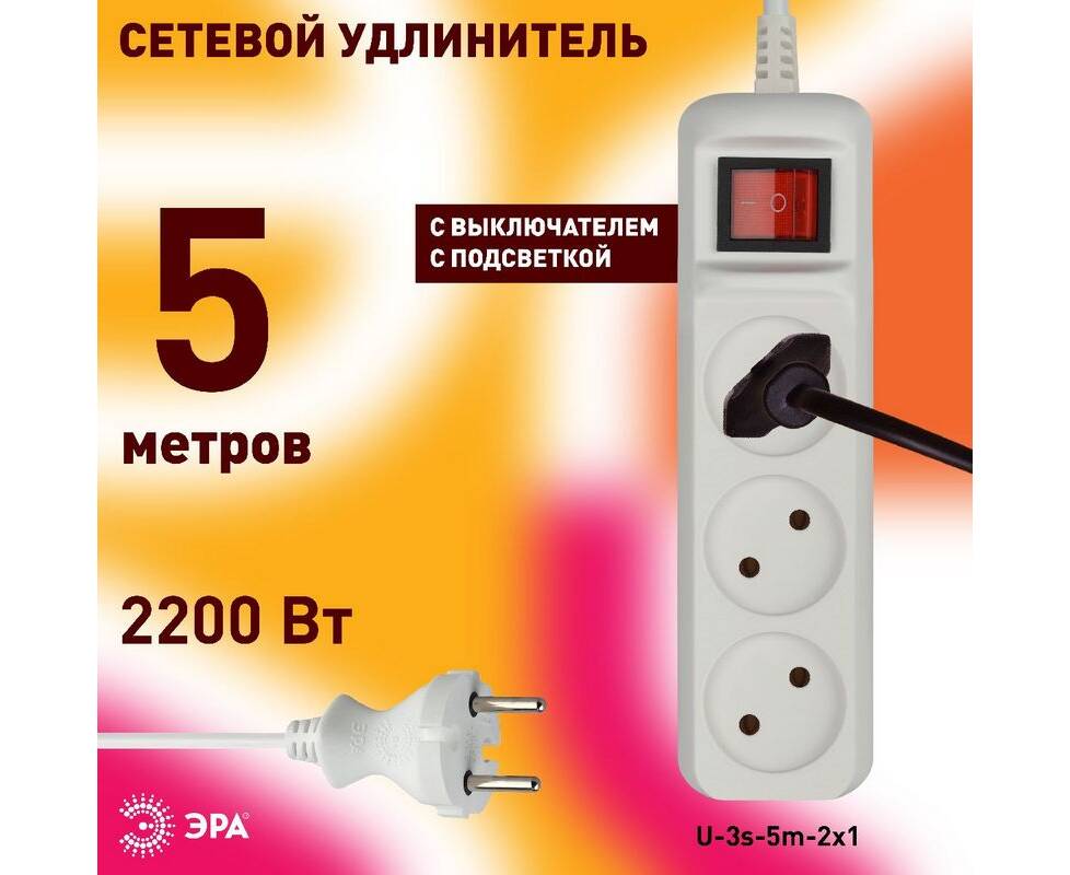 Удлинитель электрический Эра U-3s-5m-2x1 Б0044051