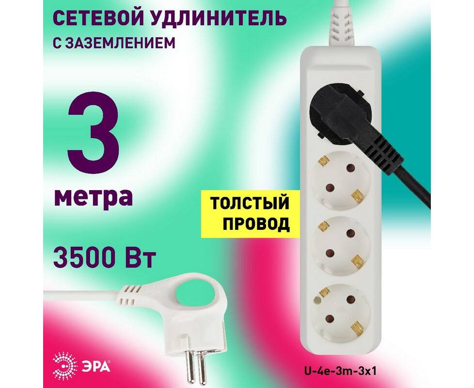 Удлинитель электрический Эра U-4e-3m-3x1 Б0028374
