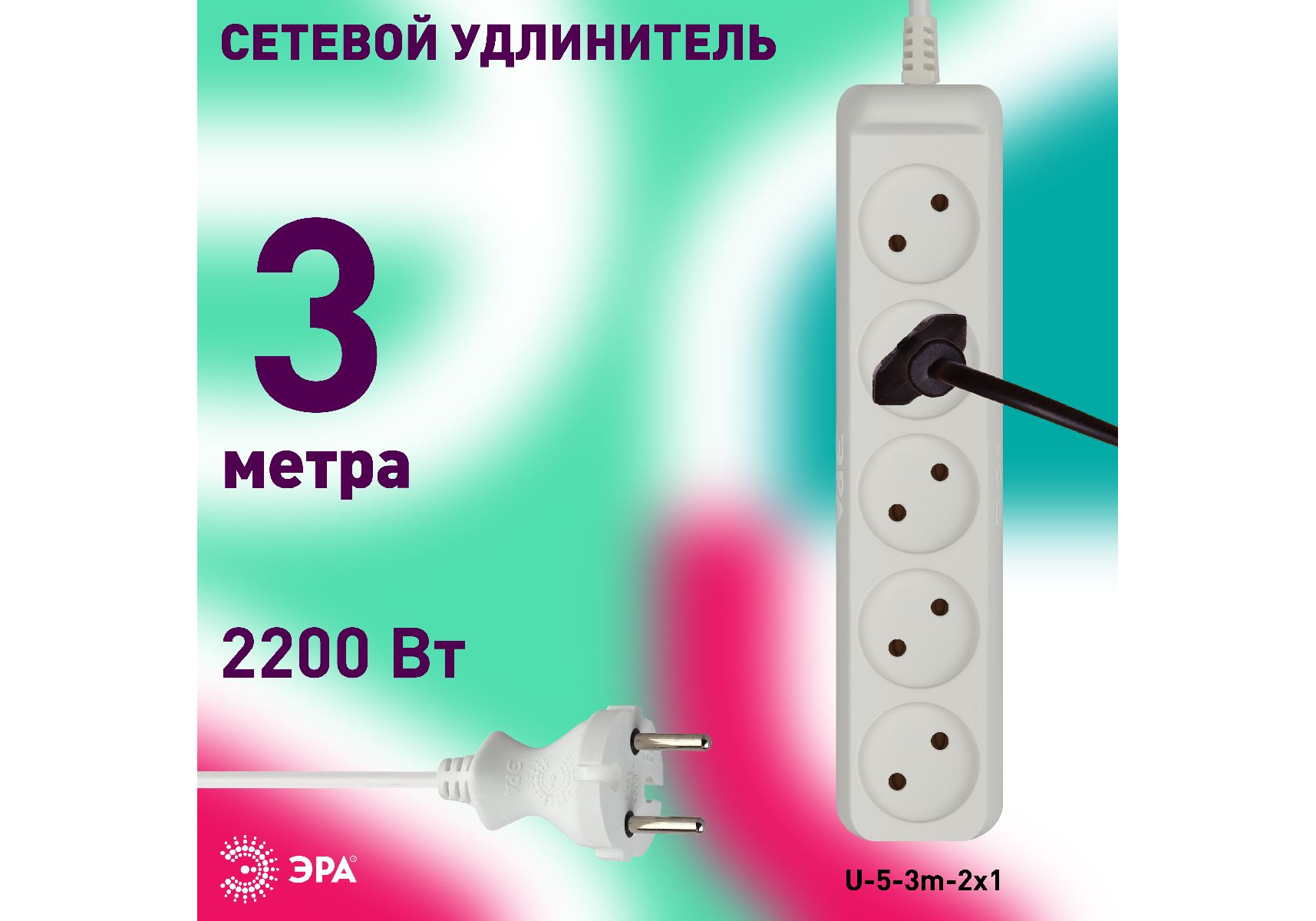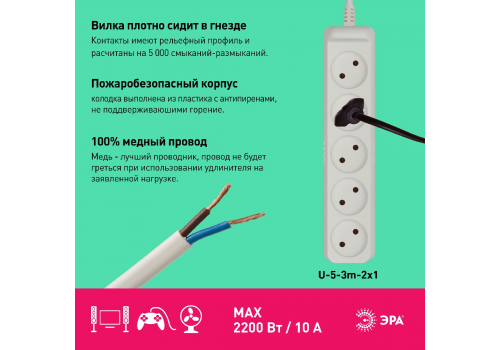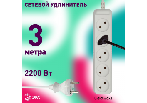 Удлинитель электрический Эра U-5-3m-2x1 Б0028364
