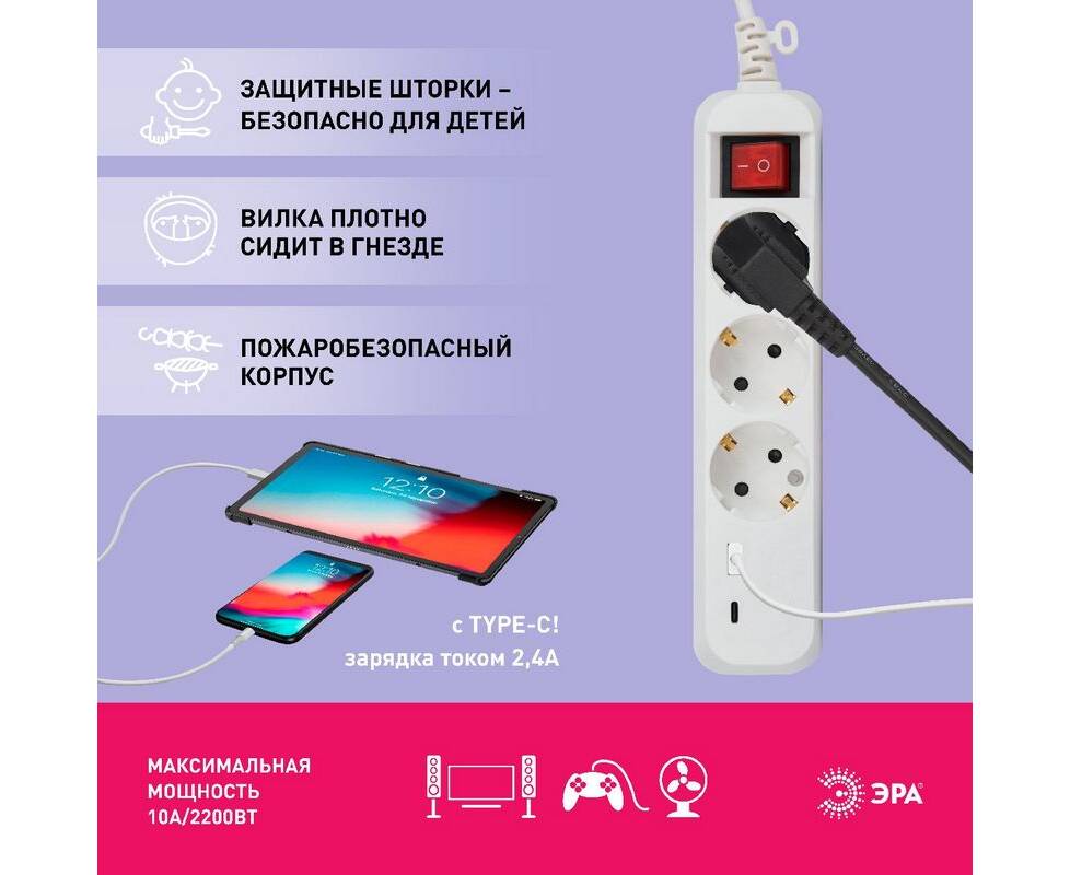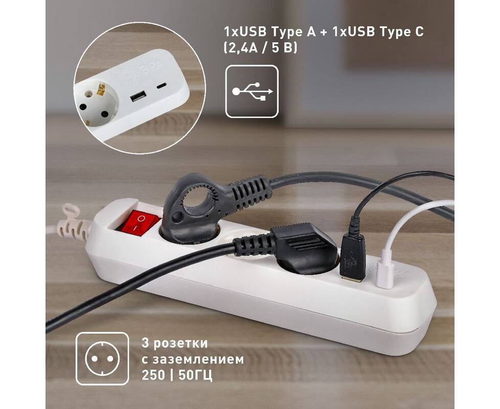Удлинитель электрический Эра UB-3es-3m-USB Б0052898