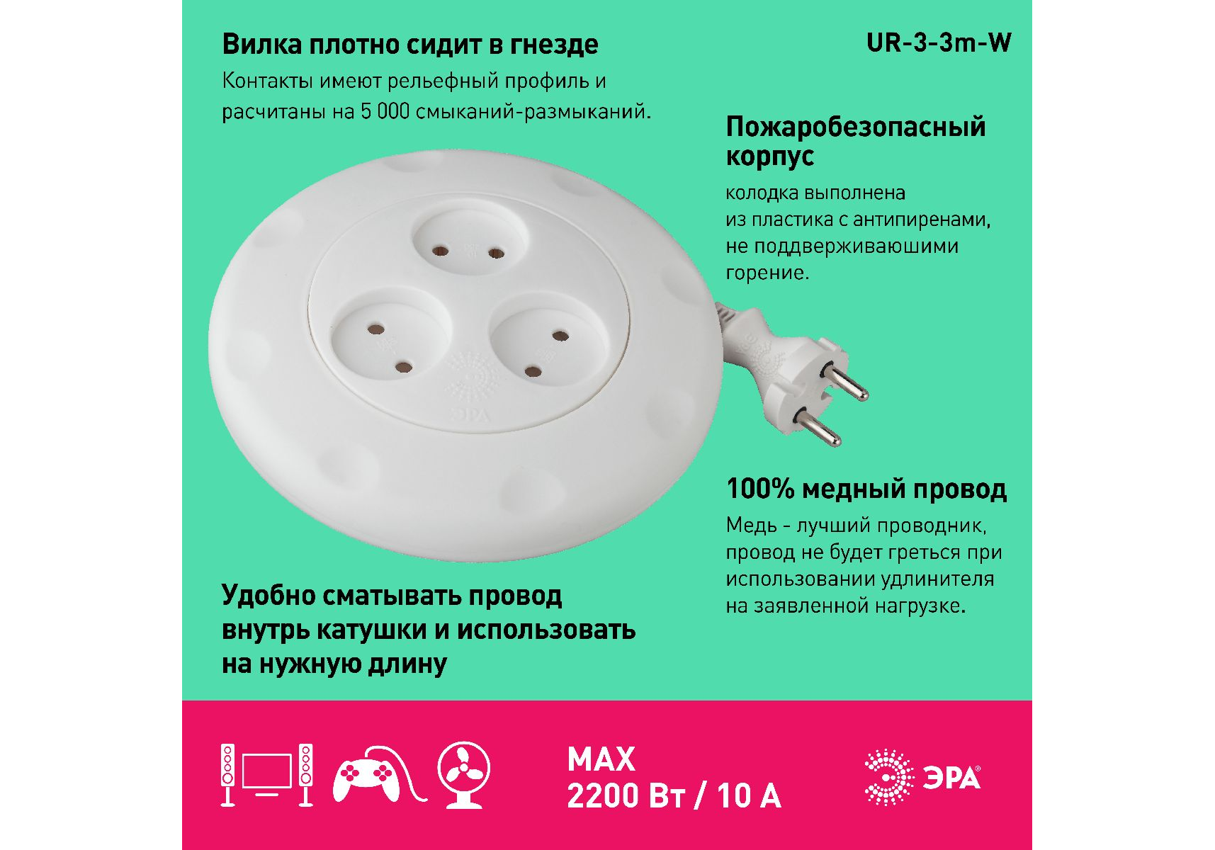 Удлинитель электрический Эра UR-3-3m-W Б0019038
