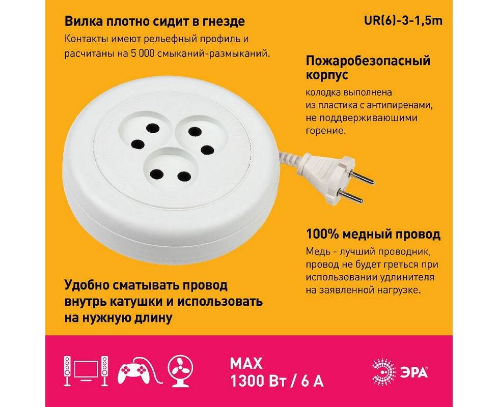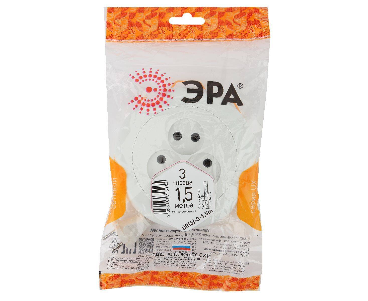 Удлинитель электрический Эра UR(6)-3-1,5m Б0035761