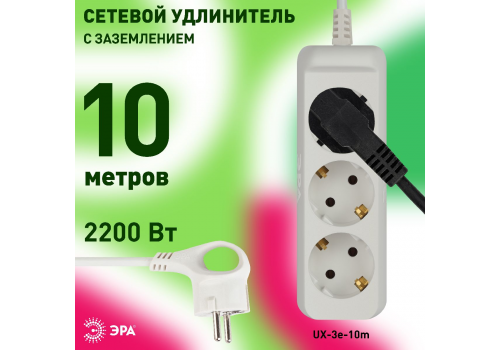Удлинитель электрический Эра UX-3e-10m Б0038578