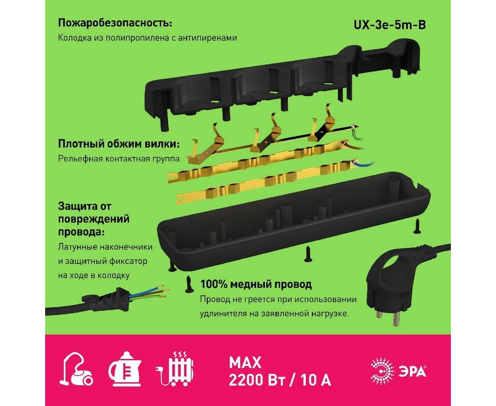 Удлинитель электрический Эра UX-3e-5m-B Б0057723