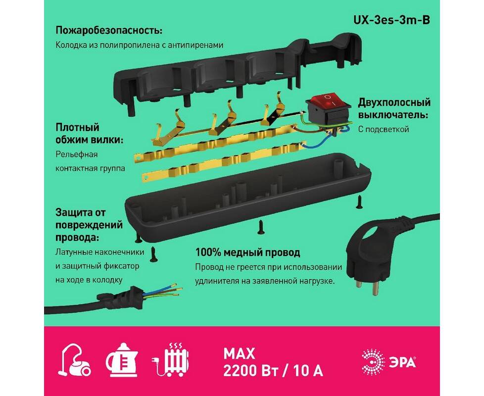 Удлинитель электрический Эра UX-3es-3m-B Б0057728