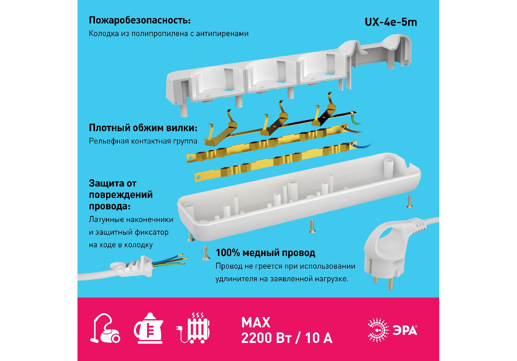 Удлинитель электрический Эра UX-4e-5m Б0038580