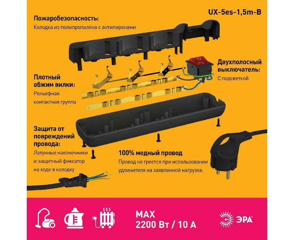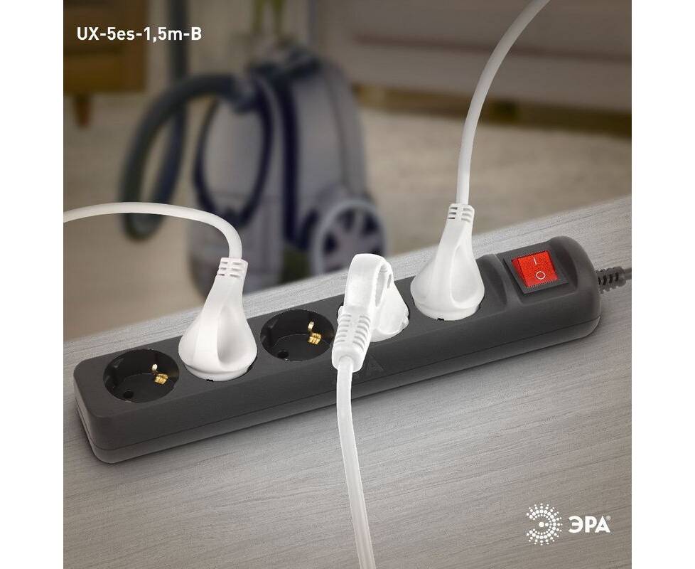 Удлинитель электрический Эра UX-5es-1,5m-B Б0057730