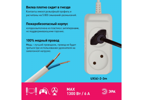 Удлинитель электрический Эра UX(6)-2-3m Б0038565