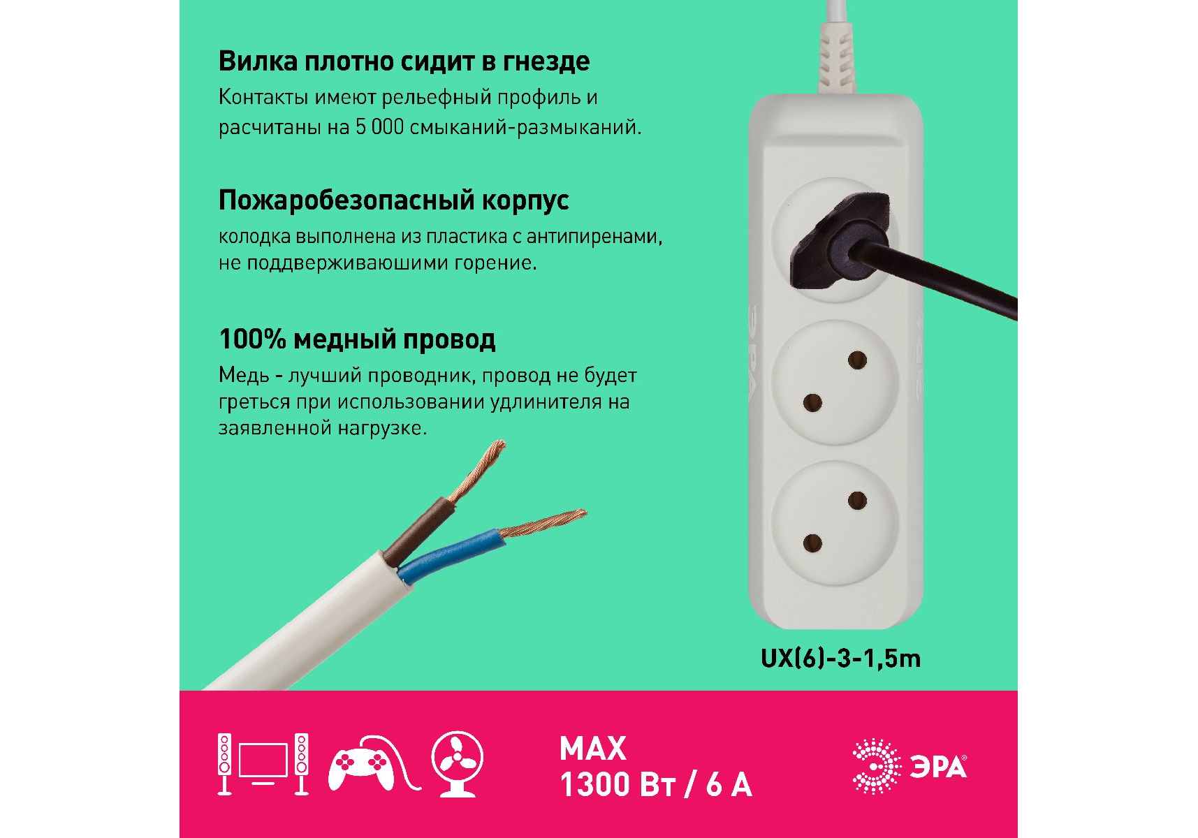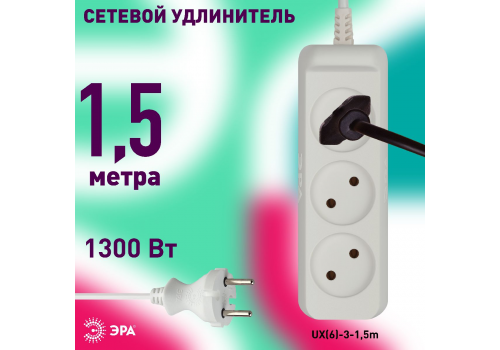 Удлинитель электрический Эра UX(6)-3-1,5m Б0038567