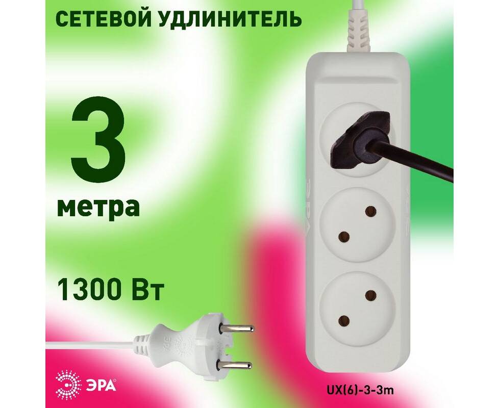 Удлинитель электрический Эра UX(6)-3-3m Б0038568