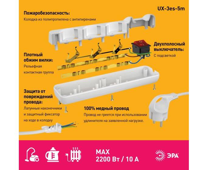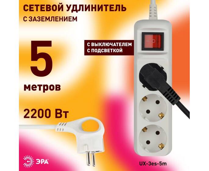 Удлинитель ЭРА UX-3es-5m Б0035755
