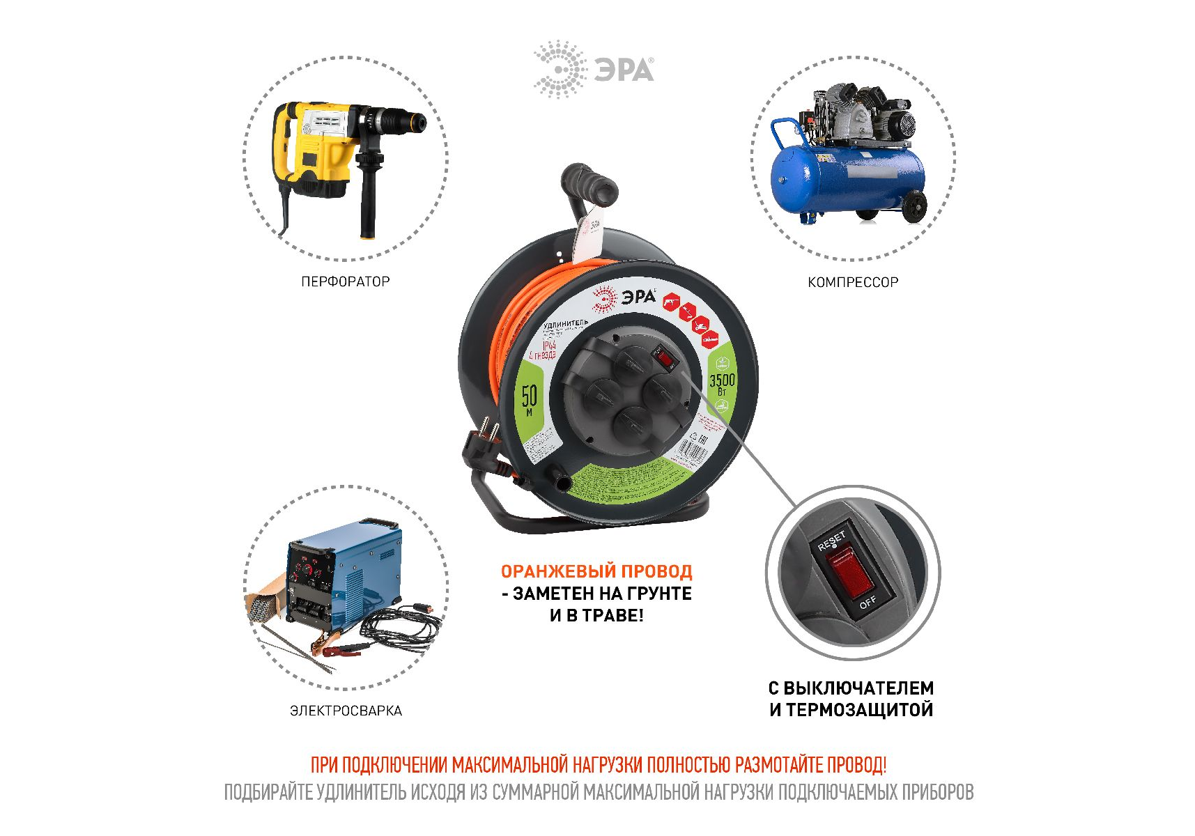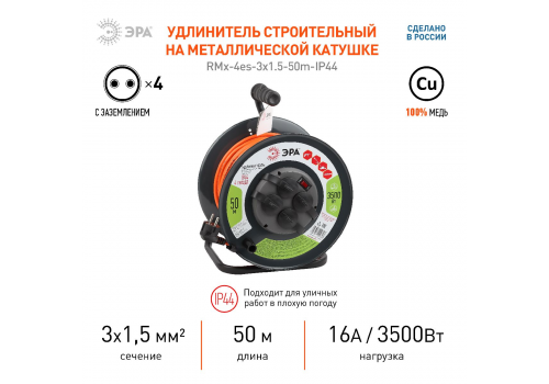 Удлинитель силовой Эра RMx-4es-3x1.5-50m-IP44 Б0046852
