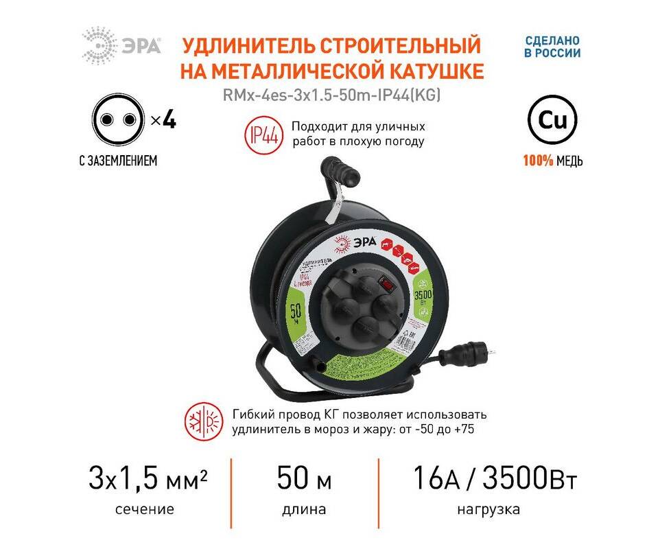 Удлинитель силовой Эра RMx-4es-3x1.5-50m-IP44(KG) Б0046804