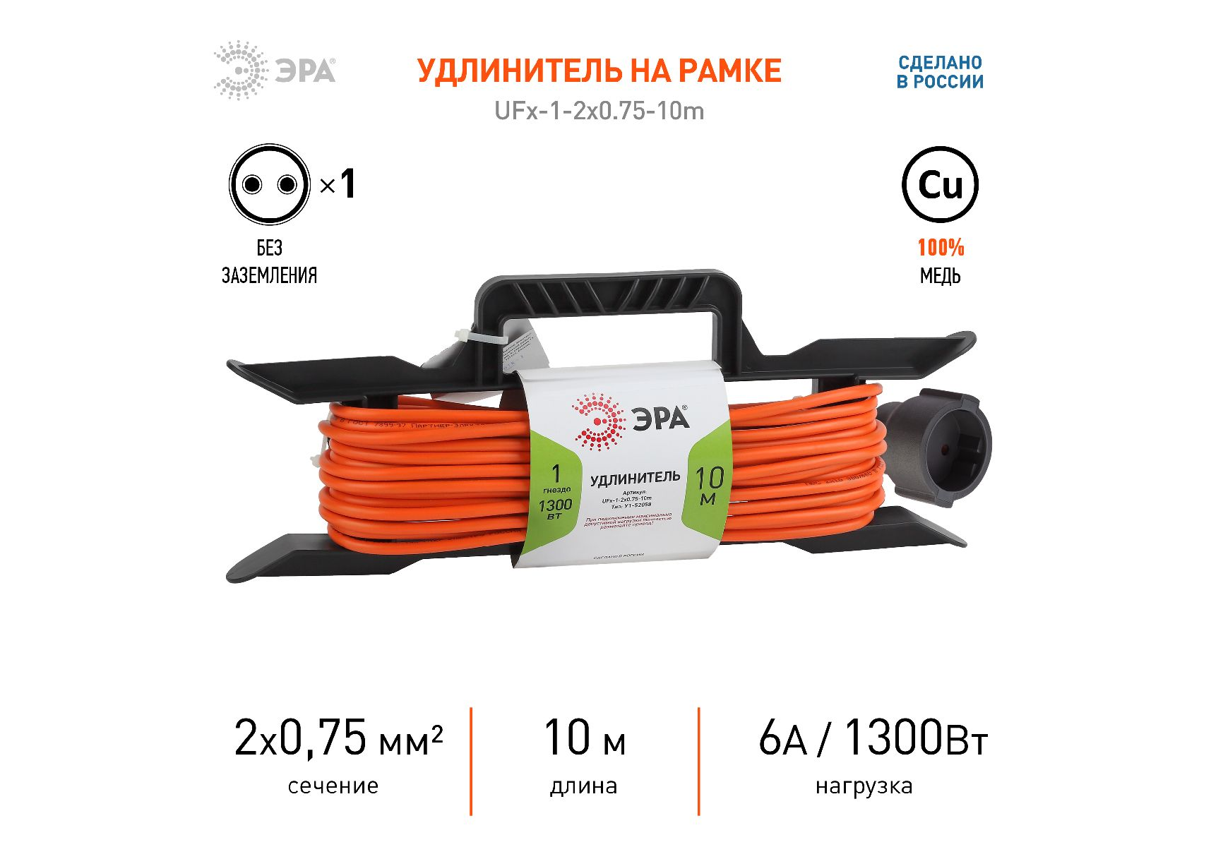 Удлинитель силовой Эра UFx-1-2x0.75-10m Б0046820