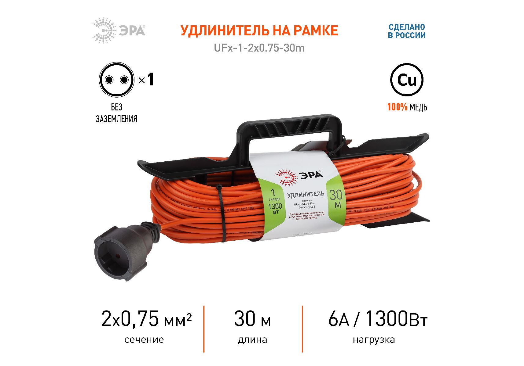 Удлинитель силовой Эра UFx-1-2x0.75-30m Б0046822